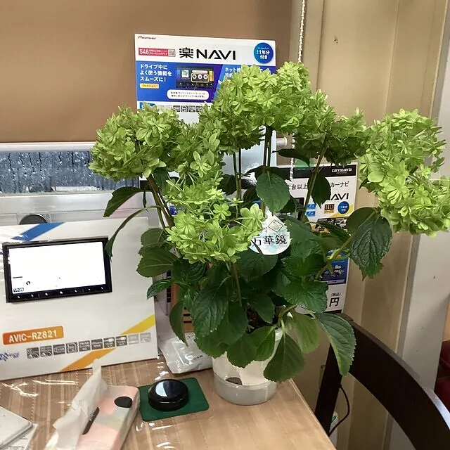 後は母の日に母にプレゼントした紫陽花、万華鏡と言う品種らしいのですが、母が事務所に飾っておきなさいと少し経ってからくれました。苔とガジュマルも元気に育ってます。盆栽の黒松、これも写真に撮っておきました。盆栽って奥が深そうです。