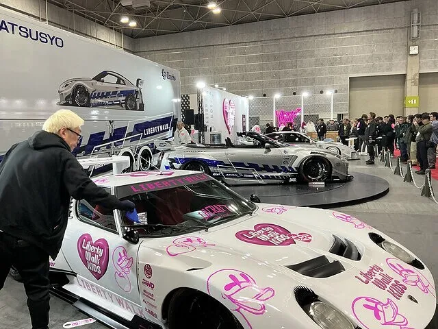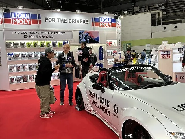 まずは、dixcelさんのブース、もう20年近くブレーキ販売さしてもらってます。担当者の方がいたのでご挨拶。社長はたまたま不在のようで、次は明治産業さんのリキモリ、ブース。なんとリバティーウォークさんとコラボしてました。びっくりです。ラウダダの平見君もいたし、洗車グッズのジーオンブースも。ちょっとびっくりしたのは、リバティーウォークのGT-Rのオープンカー