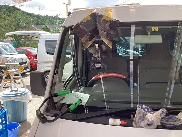西宮市 フロントガラスのリペア修理、特殊な道具でやるんです‼️ ASホールディングス 軽バン・箱バン専門店 オートサポートグループ